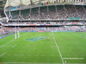 It is a wonderful thing to learn about sport in the context of culture, and living in Hong Kong has broadened that aspect for me. One of the biggest annual sporting events I’ve ever experienced in Hong Kong is the Hong Kong Rugby Sevens, which takes place every year inside Hong Kong Stadium at the end of March. Tens of thousands of fans from all over the world converge upon Hong Kong one weekend in March to watch their teams play. The atmosphere is electric and the excitement spills over everywhere, much like the Pimm’s No. 1 and beer spilling out from all over the South Stands of the stadium where the most lively and costumed fans congregate. I’ve never seen anything like it, and I don’t think I’ve ever seen such a concentration of studly, neckless physical specimens in tight rugby shorts and striped shirts gathered in such numbers. Oo-la-la, it is truly awe-inspiring. But most impressive are all the fans who come out to enjoy the day, fans who are generally good-natured, well behaved, and willing to teach any newcomer all their songs and chants. The entire crowd sings along, and the day is good old-fashioned fun. There is something we can all learn from that.